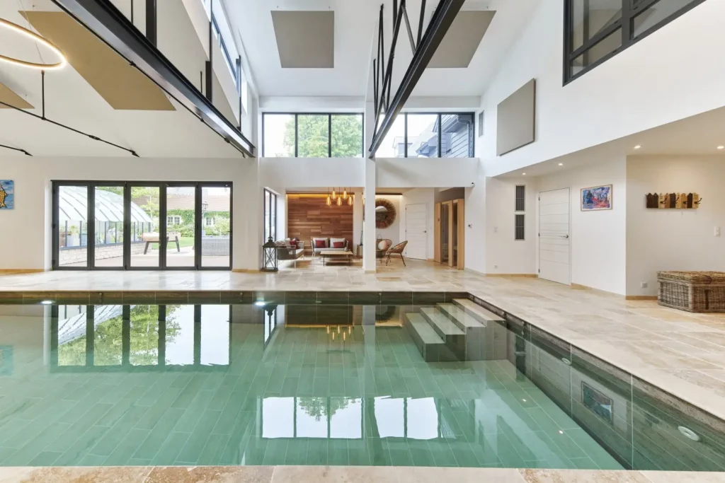 Découvrez cette magnifique piscine in intérieure qui donne sur un petit salon et un extérieur.